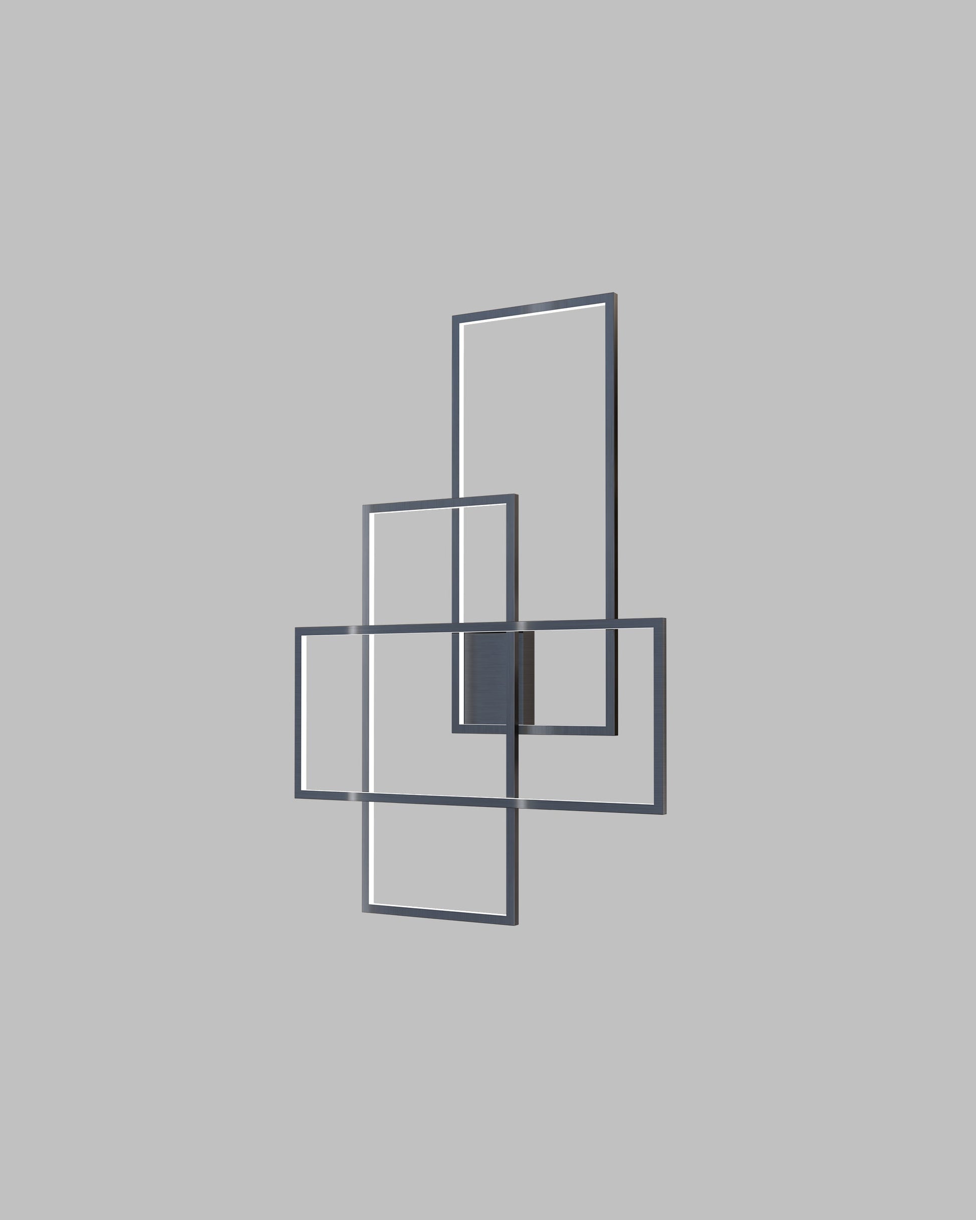 A geometric sculpture formed by interlocking rectangles of light suspended in the air. Its minimalism is only comparable to the originality of its design. Its charm is centered