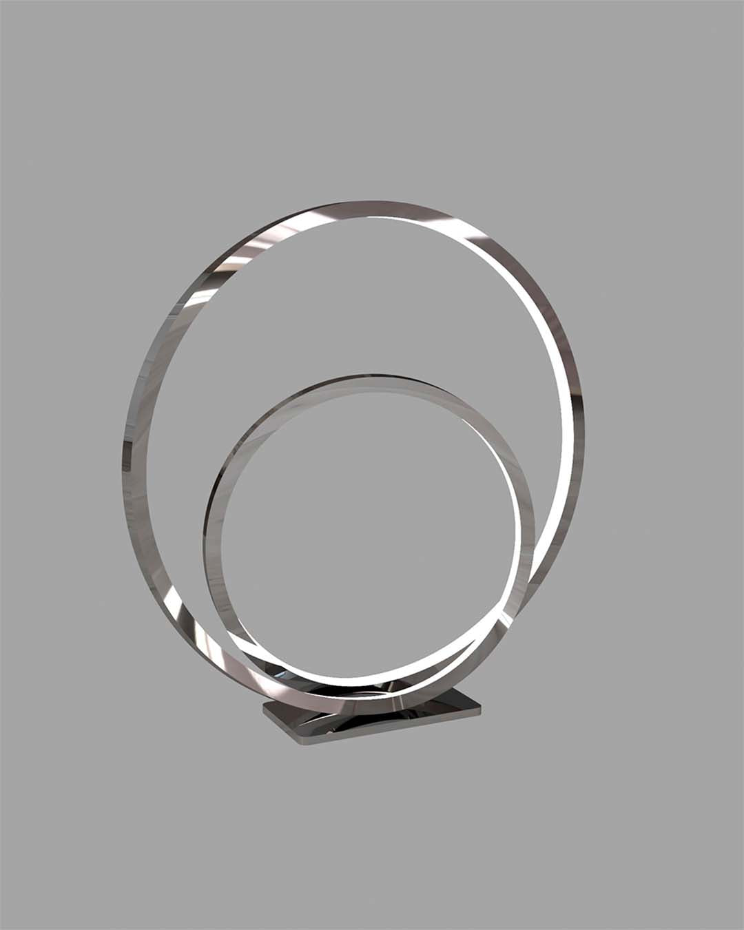 It creates a delicate spatial harmony and a visual play with an infinite form. Ideal for spaces that accentuate the exclusive.