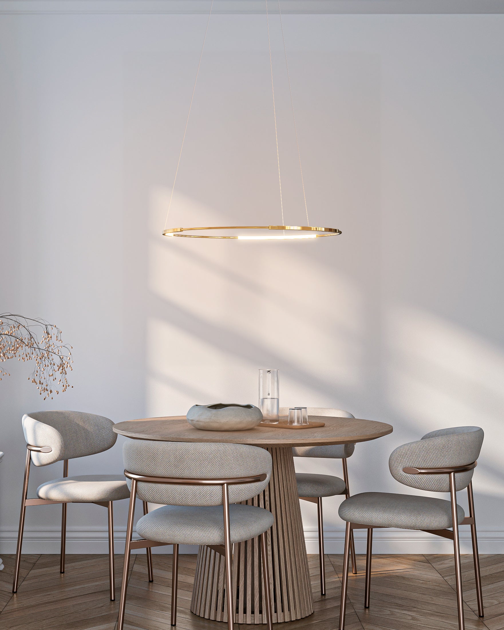 The hypnotic motion of its light patterns adds a dynamic and sophisticated touch to interiors, making it ideal for grand entrances, high-ceiling living rooms, or contemporary commercial spaces. Spin adapts effortlessly to its surroundings, becoming a centerpiece that transforms the atmosphere with its soft, warm glow.